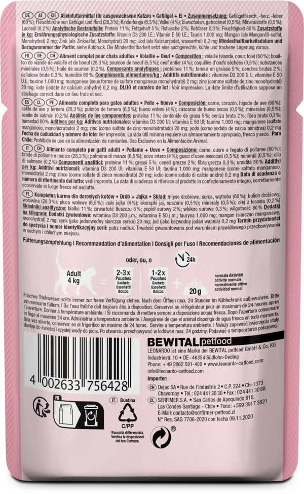 Leonardo Finest Selection Geflügel + Ei 85g Katzennassfutter